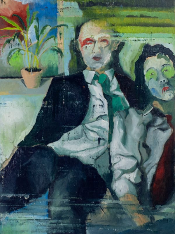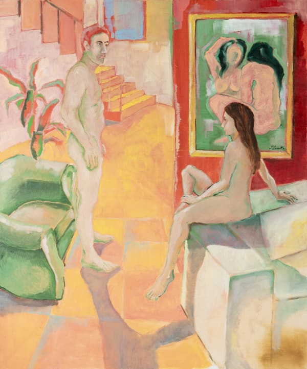Featuring over 21 works, most of them previously unseen, the exhibition highlights the gradual emergence of a visual language interweaving inner silences, isolated visions, and autobiographical fragments. “In this suspended space, the viewer is invited to fill the pauses with their own imagination, to delve into narrative fragments, and to weave nonlinear stories that resonate with personal experience,” notes curator Barbara Magliocco. The exhibition opens with early canvases set in domestic interiors: warm ochre tones, discreet furnishings, and careful perspective studies. From there, it moves toward a figurative turning point, marked by the appearance of an archetypal figure — a bald man with sunken eyes and a pronounced nose — destined to become a recurring, emblematic presence throughout the artist’s later work.